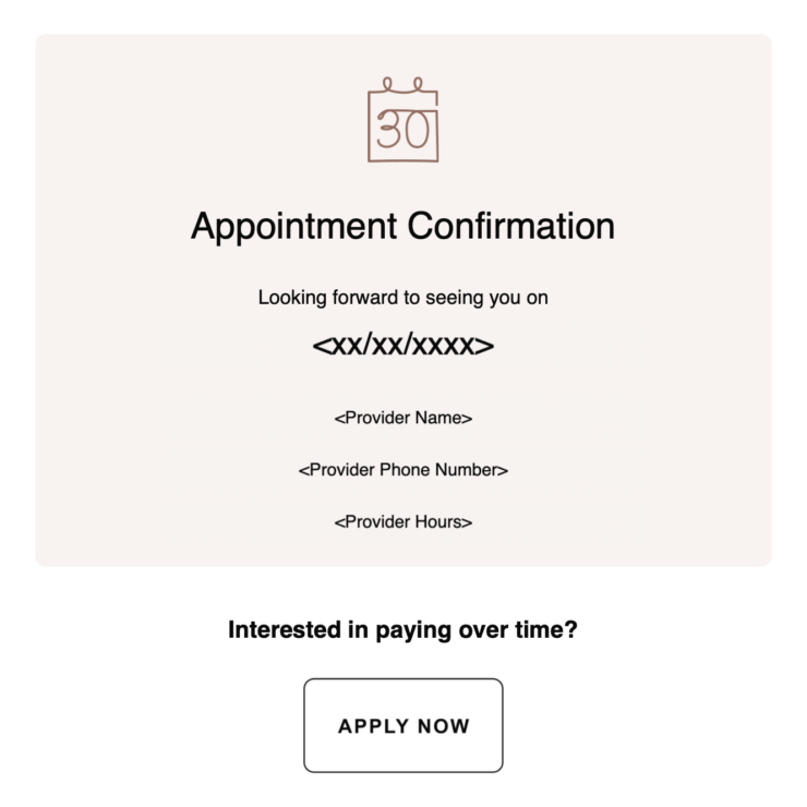 Allē Payment Plans: Appointment Confirmation Pay Over Time Email